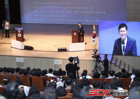 ¡®Çå¹ýÀÇ °üÁ¡¿¡¼­ ±³À°À» »ý°¢ÇÏ´Ù¡¯¸¦ ÁÖÁ¦·Î ¿¬´Ü¿¡ ¿À¸¥ ¹® Àü ÀçÆÇ°üÀº ¡°¸ðµç ±¹¹Î¿¡ ´ëÇÑ ÃʵîÇб³ Àǹ«±³À°ÀÌ Çå¹ý¿¡ ¸í½ÃµÈ °Ô 1948³âÀÌ´Ù. ¾î·Á¿î ½ÃÀýÀ̾úÁö¸¸, ±³À°ÀÇ ÈûÀ» ¹ÏÀº À̵éÀÇ ¶æÀÌ ´ã±ä °áÁ¤À̾ú´Ù. ÀÌó·³ ±³À°Àº ÇÑ »çȸÀÇ ¹Ì·¡¸¦ °áÁ¤Áþ´Â ÇÙ½É ¿ä¼Ò´Ù.¡±°í °­Á¶Çß´Ù.
