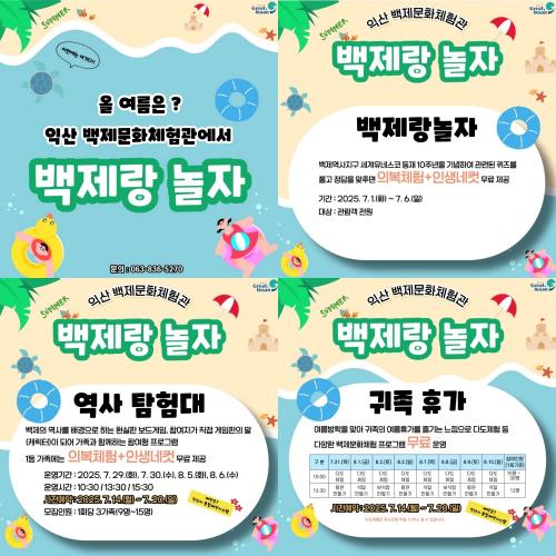 ¿ª»çŽÇè´ë¿Í ±ÍÁ·ÈÞ°¡ Âü¿© ½ÅûÀº 7¿ù 14~20ÀÏ ÀÍ»ê½Ã ÅëÇÕ¿¹¾à½Ã½ºÅÛ¿¡¼­ ÇÏ¸é µÈ´Ù. ´õ¿í ÀÚ¼¼ÇÑ ³»¿ëÀº ¹éÁ¦¹®È­Ã¼Çè°ü »çȸ°ü°è¸Á¼­ºñ½º(SNS)¿¡¼­ È®ÀÎÇϰųª ÀüÈ­(063-836-5270)·Î ¹®ÀÇÇÏ¸é µÈ´Ù.
