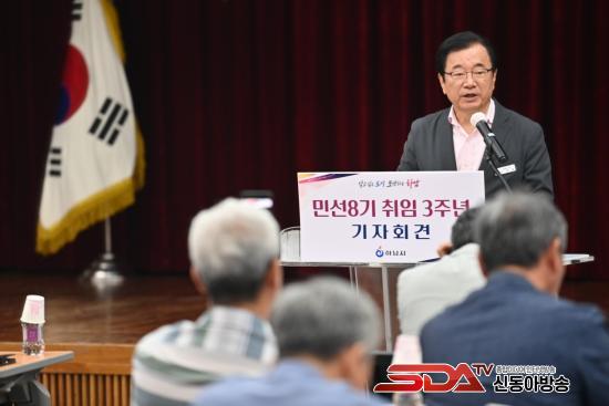 ÀÌÇöÀç Çϳ²½ÃÀå 2ÀÏ ½Ãû ´ëȸÀǽǿ¡¼­ ¿­¸° ¡®¹Î¼±8±â ÃëÀÓ 3Áֳ⠱âÀÚȸ°ß¿¡ Áö³­ 3³âÀÇ ÁÖ¿ä ¼º°ú¿Í ÇÔ²² ÇâÈÄ 1³âÀÇ ½ÃÁ¤ ¿î¿µ ¹æÇâÀ» ¼³¸íÇϰí ÀÖ´Ù.