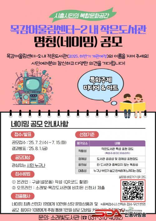 [½Åµ¿¾Æ¹æ¼Û ½ÃÈï½Ã=À̽ŵ¿±âÀÚ] ½ÃÈï½Ã´Â ¿Ã ÇϹݱ⿡ °³°ü ¿¹Á¤ÀÎ ¡®¸ñ°¨¾î¿ï¸²¼¾ÅÍ-2¡¯ ³»¿¡ Á¶¼ºµÇ´Â ÀÛÀºµµ¼­°üÀÇ ¸íĪÀ» 7¿ù 2ÀϺÎÅÍ 15ÀϱîÁö °ø¸ðÇÑ´Ù.