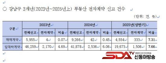½ÇÁ¦ °³²±¸ÀÇ ÀüÀÚ°è¾à ÀÌ¿ë ÃßÀÌ´Â 2023³â 4°Ç(Àüü 5,955°Ç Áß 0.07%), 2024³â 42°Ç(Àüü 9,266°Ç Áß 0.45%), 2025³â 6¿ù ±âÁØ 333°Ç(Àüü 4,554°Ç Áß 7.31%)À¸·Î, ÀÛ³â ÇϹݱâºÎÅÍ °¡ÆÄ¸¥ Áõ°¡¼¼¸¦ º¸À̰í ÀÖ´Ù.