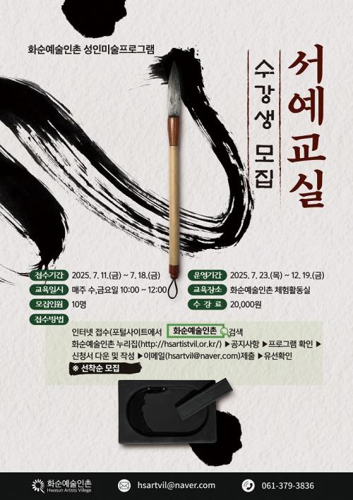 °Á´ 7¿ù 23ÀÏ(¼ö)ºÎÅÍ 12¿ù 19ÀÏ(±Ý)±îÁö ¸ÅÁÖ ¼ö¿äÀϰú ±Ý¿äÀÏ ¿ÀÈÄ 1½ÃºÎÅÍ 3½Ã±îÁö ÃÑ 44ȸÂ÷·Î ¿î¿µµÇ¸ç, ¼ö¾÷Àº ȼø¿¹¼úÀÎÃÌ ±³À°Ã¢À۽ǿ¡¼ ÁøÇàÇÑ´Ù. ¼ö°·á´Â 2¸¸ ¿øÀ̸ç, ¸ðÁýÀοøÀº 10¸íÀ¸·Î ¼±Âø¼ø ¸¶°¨ÀÌ´Ù.