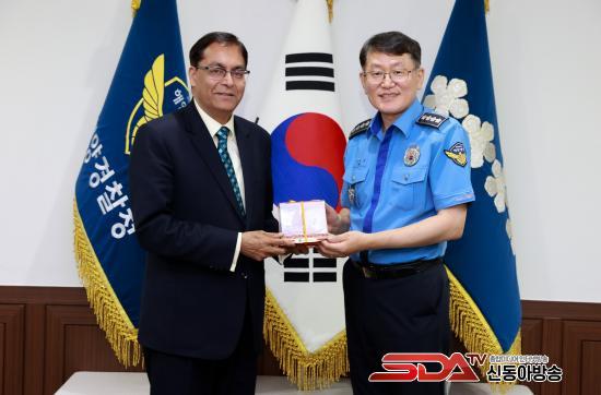 7¿ù 11ÀÏ ÁÖÇÑ Àεµ ´ë»ç°ü¿¡¼­ ¾Æ¹Ô Äí¸¶¸£ ´ë»ç°¡ ÇØ¾ç°æÂûûÀ» ¹æ¹®ÇÏ¿© ±è¿ëÁø ÇØ¾ç°æÂûûÀå°ú ÇÔ²² ¾ç±¹ ÇØ¾ç Çù·Â ¹æ¾È ³íÀÇ ÇÏ´Â ¶æ ±íÀº ÀÚ¸®¸¦ ¸¶·ÃÇÏ¿´´Ù.
