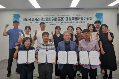 À̳¯ Çù¾à½Ä¿¡´Â Áø¾È±º³ëÀÎÃë¾÷Áö¿ø¼¾ÅÍ(¼¾ÅÍÀå ÀÌÁø¿ë), Áø¾È±º¿©¼ºÀÏÀÚ¸®Áö¿ø¼¾ÅÍ(¼¾ÅÍÀå ¹Ú¹ÌÈñ), Áø¾È±º°¡Á·¼¾ÅÍ(¼¾ÅÍÀå ¹ÚÁÖö) µîÀÌ Âü¿©Çß´Ù. ÀÌµé ±â°üÀº Áø¾È±ºÀÇ Àα¸ °¨¼Ò¿Í °í·ÉÈ·Î ÀÎÇÑ ³ëµ¿·Â ºÎÁ·À» ÇØ¼ÒÇϰí, ±¸ÀΡ¤±¸Á÷ ¹Ì½º¸ÅĪÀ» ÁÙ¿© Ãë¾÷·ü°ú Á¤ÁÖ Àα¸ÀÇ Á¤Âø·üÀ» ³ôÀÌ´Â µ¥ ¶æÀ» ¸ð¾Ò´Ù.