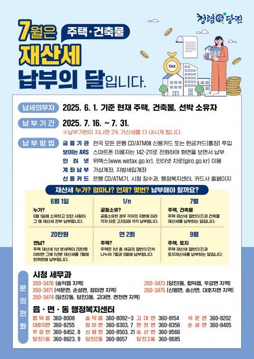 ½Ã °ü°èÀÚ´Â ¡°Àç»ê¼¼´Â Áö¿ª¹ßÀü°ú ½Ã¹Î º¹Áö ÁõÁøÀ» À§ÇÑ Áß¿äÇÑ Àç¿ø¡±À̶ó¸ç ¡°³³ºÎ ±âÇÑ ÀÌÈÄ¿¡´Â 3%ÀÇ ³³ºÎ Áö¿¬ °¡»ê¼¼°¡ Ãß°¡µÇ¹Ç·Î ºÒÀÌÀÍÀ» ¹ÞÁö ¾Êµµ·Ï ¹Ýµå½Ã 7¿ù 31ÀϱîÁö ³³ºÎÇϱ⠹ٶõ´Ù¡±°í ´çºÎÇß´Ù.