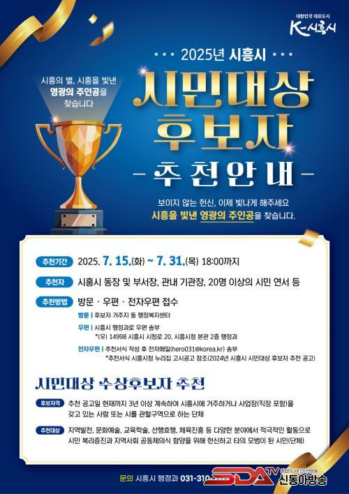 ¡®½ÃÈï½Ã ½Ã¹Î´ë»ó¡¯Àº ½ÃÈï½Ã ÃÖ°í ±ÇÀ§ÀÇ »óÀ¸·Î, Áö¿ª»çȸ ¹ßÀü°ú ½Ã¹Î º¹Áö ÁõÁø¿¡ Çå½ÅÇÑ À̵éÀ» ¹ß±¼ÇØ ½ÃÈï½ÃÀÇ ¸í¿¹¸¦ µå³ôÀ̰í, ÀÌ¿ôÀ» À§ÇØ µû¶æÇÑ ½ÇõÀ» ³Î¸® ¾Ë¸®±â À§ÇØ ¸¶·ÃµÆ´Ù.
