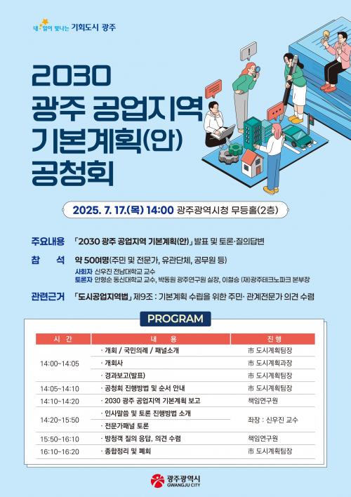 À̹ø °øÃ»È¸´Â °ø¾÷Áö¿ªÀÇ Ã¼°èÀûÀÎ °ü¸®¸¦ À§ÇÑ Á¤ºñ ¹æÇâÀ» ´ãÀº °èȹ(¾È)¿¡ ´ëÇØ ½Ã¹Î°ú Àü¹®°¡ÀÇ ÀǰßÀ» ¼ö·ÅÇϱâ À§ÇØ ¸¶·ÃµÆ´Ù.