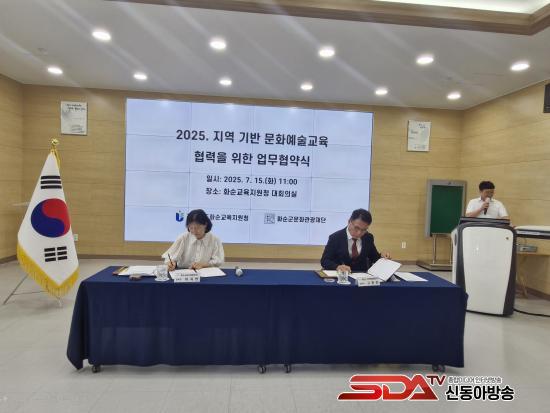 [½Åµ¿¾Æ¹æ¼Û Àü³²È­¼ø=À̽ŵ¿±âÀÚ] È­¼ø±³À°Áö¿øÃ»°ú È­¼ø±º¹®È­°ü±¤Àç´ÜÀº 7¿ù 15ÀÏ(È­) ¿ÀÀü 11½Ã, ´ëȸÀǽǿ¡¼­ Áö¿ª±â¹Ý ¹®È­¿¹¼ú±³À° Çù·ÂÀ» À§ÇÑ ¾÷¹«Çù¾àÀ» ü°áÇß´Ù.