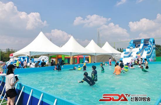 ¡®2025 °³²±¸ µµ½É ¼Ó ¹°³îÀÌÀ塯Àº ¾à 2,000§³ ±Ô¸ð¿¡ ´ëÇü ¼ö¿µÀå, ½½¶óÀÌµå ¹Ù¿î½º, ¿¡¾îÇ®Àå, ºÐ¼öÅͳΠµî ´Ù¾çÇÑ ¹°³îÀÌ ½Ã¼³·Î ±¸¼ºµÈ´Ù. ±×´Ã¸·, ¸ù°ñÅÙÆ®, ÆÄ¶ó¼Ö, °£ÀÌ »þ¿öÀå°ú Å»ÀÇ½Ç µî À̿밴À» À§ÇÑ ÆíÀǽü³µµ ÇÔ²² ¿î¿µÇÑ´Ù.