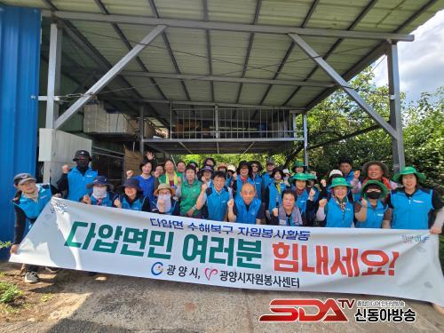 º¹±¸ Ȱµ¿¿¡´Â ±¤¾ç½Ã»õ¸¶À»È¸, ¿ì·Ú¡°Ë´Ù¸®ºÀ»ç´Ü, µ¿»ç¸ð µî ±¤¾ç½ÃÀÚ¿øºÀ»ç¼¾ÅÍ ¼Ò¼Ó ÀÚ¿øºÀ»çÀÚ 40¿© ¸íÀÌ Âü¿©Çß´Ù. À̵éÀº ħ¼ö °¡¿Á Åä»ç Á¦°Å, Áý±â·ù ¼¼Ã´, û¼Ò µî ÁÖ°Å °ø°£ Á¤ºñ ÀÛ¾÷¿¡ ±¸½½¶¡À» È긮¸ç ÇÇÇØ ÁÖ¹ÎÀÇ Á¶¼ÓÇÑ ÀÏ»ó ȸº¹À» µµ¿Ô´Ù.