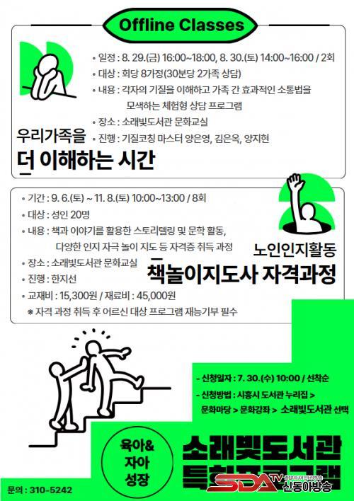 [½Åµ¿¾Æ¹æ¼Û ½ÃÈï½Ã=À̽ŵ¿±âÀÚ] ½ÃÈï½Ã¼Ò·¡ºûµµ¼­°üÀº Áö¿ª ÁֹεéÀÇ µ¶¼­¹®È­ ÇâÀ¯¿Í Æò»ýÇнÀ ±âȸ È®´ë¸¦ À§ÇØ ¿À´Â 8¿ùºÎÅÍ 11¿ù±îÁö µ¶Ã¢ÀûÀ̰í Àü¹®È­µÈ ¡®À°¾Æ&ÀھƼºÀå Æ¯È­ÇÁ·Î±×·¥¡¯À» ¿î¿µÇÑ´Ù.