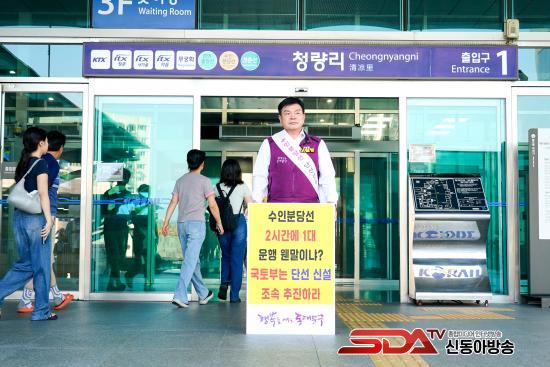 [½Åµ¿¾Æ¹æ¼Û µ¿´ë¹®±¸=À̽ŵ¿±âÀÚ] ÀÌÇÊÇü µ¿´ë¹®±¸Ã»ÀåÀº ¡®Ã»·®¸®¿ª~¿Õ½Ê¸®¿ª °£(¾à 1km)ÀÇ ´Ü¼±Àüö¡¯ ½Å¼³ÀÇ Á¶¼ÓÇÑ ÃßÁøÀ» Ã˱¸Çϸç 12ÀÏ Ã»·®¸®¿ª ±¤Àå¿¡¼­ 1ÀÎ ÇÇÄÏ ½ÃÀ§¸¦ Çß´Ù.