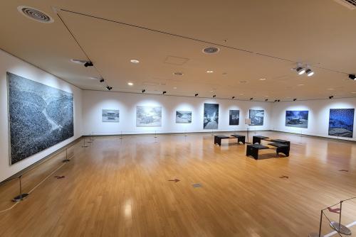 Àü½Ã´Â °ø°£ Àüü¸¦ È帣µí ¿¬°áÇϸç, °ü¶÷°´ÀÌ °ÉÀ½À» ¿Å±æ¼ö·Ï ÀÛǰÀÇ »öä¿Í ¿Âµµ°¡ º¯Çذ£´Ù. ÃÊÀÔ¿¡¼´Â ÀÜÀÜÇÏ°í ¼Á¤ÀûÀÎ Àå¸éÀÌ, Áß¹ÝÀ¸·Î °¥¼ö·Ï ±í°í ³ó¹ÐÇÑ »öÀÇ ¿ï¸²ÀÌ ÆîÃÄÁö°í, ¸¶Áö¸·¿¡´Â ´Ù½Ã °í¿äÇÏ°í »ç»öÀûÀΠȸéÀÌ ¿©¿îÀ» ³²±ä´Ù. À̸¦ ÅëÇØ °ü¶÷°´Àº ¡®±â¾ïÀÌ ¹øÁö°í ÇǾ´Â °úÁ¤¡¯À» ½Ã°¢ÀûÀ¸·Î üÇèÇÏ°Ô µÈ´Ù.