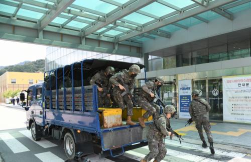 ÇÑÆí, ³²±¸´Â À»Áö¿¬½À ÈÆ·Ã ±â°£ÀÎ ¿À´Â 18ÀϺÎÅÍ 21ÀϱîÁö 3¹Ú 4Àϰ£ Àü Á÷¿øÀÌ Âü¿©ÇÑ °¡¿îµ¥ ºñ»ó¼ÒÁý°ú Àü½Ã Àüȯ ÀýÂ÷ ¿¬½À, µµ»ó¿¬½À µî ´Ù¾çÇÑ ÈÆ·ÃÀ» ½Ç½ÃÇÒ ¿¹Á¤ÀÌ´Ù.