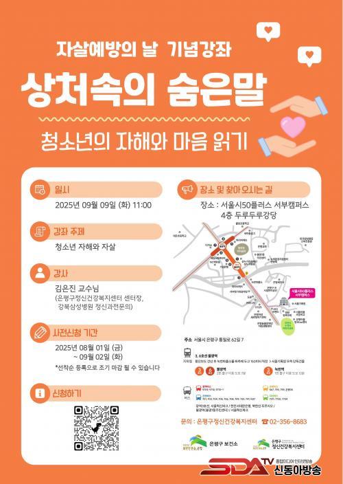 [½Åµ¿¾Æ¹æ¼Û ÀºÆò±¸=À̽ŵ¿±âÀÚ] ¼­¿ï ÀºÆò±¸´Â 9¿ù 10ÀÏ ¡®¼¼°è Àڻ쿹¹æÀÇ ³¯¡¯À» ¸Â¾Æ ³»´Þ 9ÀÏ ¿ÀÀü 11½Ã, ¼­¿ï½Ã50Ç÷¯½º ¼­ºÎÄ·ÆÛ½º 4Ãþ ¡®µÎ·çµÎ·ç°­´ç¡¯¿¡¼­ ¡®»óó ¼ÓÀÇ ¼ûÀº ¸»: û¼Ò³âÀÇ ÀÚÇØ¿Í ¸¶À½ Àб⡯ °­Á¸¦ °³ÃÖÇÑ´Ù°í ¹àÇû´Ù.