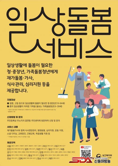 ¡®Àϻ󵹺½ ¼­ºñ½º¡¯´Â Áúº´À̳ª °í¸³ µîÀ¸·Î ÀÏ»ó»ýȰ¿¡ µ¹º½ÀÌ ÇÊ¿äÇÑ Ã»¡¤ÁßÀå³â(19~64¼¼)°ú Áúº´¡¤Á¤½ÅÁúȯ µîÀ» ¾Î°í ÀÖ´Â °¡Á·À» µ¹º¸°Å³ª ±×·Î ÀÎÇØ »ý°èÃ¥ÀÓÀ» Áö°í Àִ û³â(9~39¼¼)À» Áö¿øÇϱâ À§ÇØ ½ÃÇàÁßÀÎ ¼­ºñ½ºÀÌ´Ù.