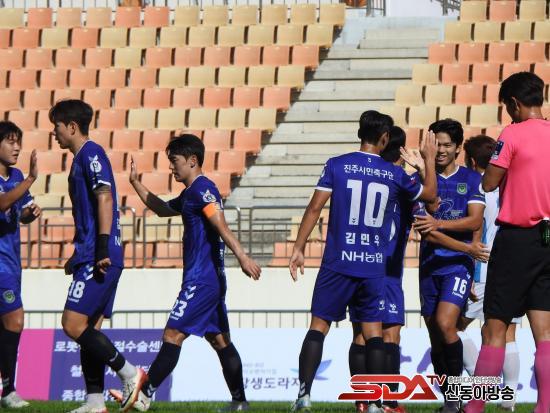 [½Åµ¿¾Æ¹æ¼Û °æ³²ÁøÁÖ=³²±Ã¿µ±â±âÀÚ] ÁøÁֽùÎÃ౸´ÜÀÌ Áö³­ 20ÀÏ ÁøÁÖÁ¾ÇÕ°æ±âÀå¿¡¼­ ¿­¸° 2025 K4¸®±× 27¶ó¿îµå Ȩ°æ±â¿¡¼­ ¼±¼öµéÀÇ °í¸¥ Ȱ¾à¿¡ ÈûÀÔ¾î ÆòÅÃ½ÃÆ¼ÁðFC¸¦ 4 – 1·Î ²ªÀ¸¸ç 2¿¬½ÂÀ» ´Þ·È´Ù.