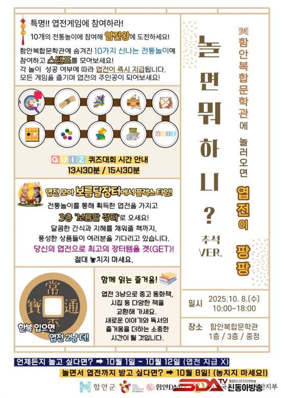 ƯÈ÷ 10¿ù 8ÀÏ ¿ÀÀü 10½ÃºÎÅÍ ¿ÀÈÄ 6½Ã±îÁö´Â ÇÔ¾È µð¿¥¿À(DMO), ÇԾȹ®ÀÎÇùȸ, ÇԾȳó¿ä¿Í ÇÔ²²ÇÏ´Â ¡®³î¸é ¹¹ÇÏ´Ï? Ãß¼® ¹öÀü¡¯ÀÌ ¿·Á °¡Á· ´ÜÀ§ ¹æ¹®°´µé¿¡°Ô dz¼ºÇÑ ÀüÅë¹®È Ã¼ÇèÀÇ ÀåÀÌ ¸¶·ÃµÉ ¿¹Á¤ÀÌ´Ù.