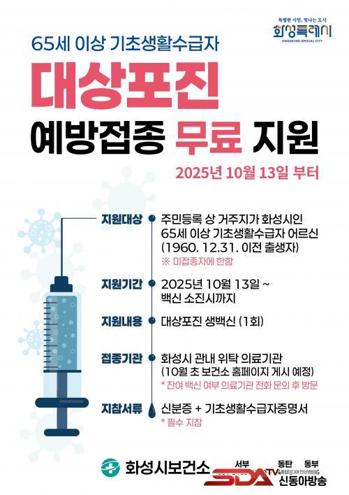 È­¼ºÆ¯·Ê½Ã, 65¼¼ ÀÌ»ó ±âÃÊ»ýȰ¼ö±ÞÀÚ ´ë»ó ¡®´ë»óÆ÷Áø ¿¹¹æÁ¢Á¾¡¯ Àü¾× Áö¿ø