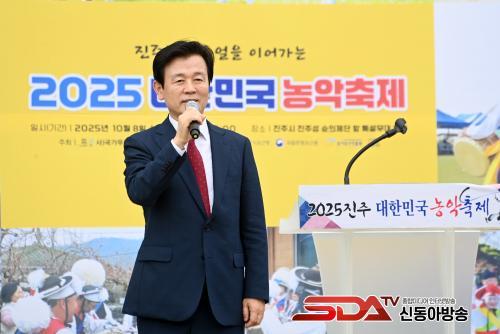 [½Åµ¿¾Æ¹æ¼Û °æ³²ÁøÁÖ=³²±Ã¿µ±â±âÀÚ] ´ëÇѹα¹À» ´ëÇ¥ÇÏ´Â ³ó¾ÇÀεé°ú ½Ã¹Î, °ü±¤°´ÀÌ ÇÔ²² ¾î¿ì·¯Á® ÁøÁÖ³²°­À¯µîÃàÁ¦¿¡ ÈïÀ» ºÏµ¸¿î ¡®2025 ´ëÇѹα¹ ³ó¾ÇÃàÁ¦¡¯°¡ Áö³­ 8ÀÏ ÁøÁÖ¼º °è»ç¼øÀÇ´Ü ¾Õ Ư¼³¹«´ë¿¡¼­ ¼ºÈ²¸®¿¡ °³ÃֵƴÙ.