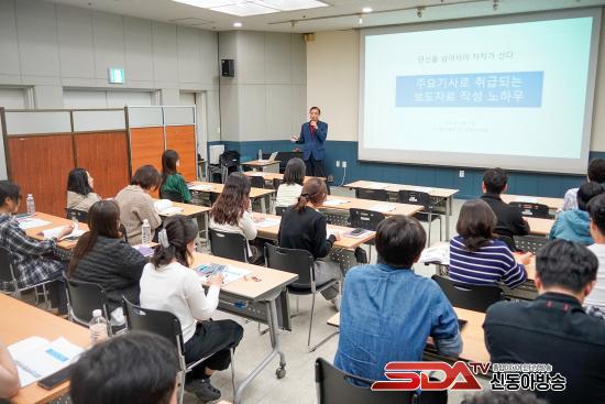 À̳¯ °ÀÇ´Â ÇѰܷ¹½Å¹® ¡®¼¿ï&¡¯ ¼½¼Ç ÆíÁýÀå ÇϺ¯±æ ±âÀÚ°¡ ¸Ã¾Æ ¡®´Ü½ÅÀ» ³Ñ¾î¼¾ß ÀÚÄ¡°¡ »ê´Ù¡¯¸¦ ÁÖÁ¦·Î 2½Ã°£ µ¿¾È ÁøÇàµÆ´Ù. ÇÏ ±âÀÚ´Â º¸µµÀÚ·áÀÇ ±â»çÈ °¡Ä¡¿Í ±âȹ·Â, ±âÀÚµéÀÌ ÁÖ¸ñÇÏ´Â ÀÚ·á ±¸¼º, Á¦¸ñ°ú ¸®µå¹® ÀÛ¼º ¿ä·É, »çÁø¡¤Ä¸¼Ç ÀÛ¼º ½Ç¹« µîÀ» ±¸Ã¼ÀûÀÎ »ç·Ê¸¦ ÅëÇØ ¼³¸íÇß´Ù.
