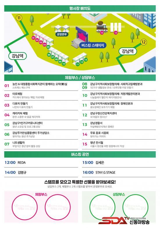ÇöÀå¿¡´Â ÁÖ°Å, Á¤½Å°Ç°, º¹Áö °ü·Ã »ó´ã ºÎ½º ¿Ü¿¡µµ Ÿ·Î üÇè, ij¸®Ä¿Ã³ ±×¸®±â, µðÇ»Àú ¸¸µé±â, ¿À¶ô±â±â üÇè µî Âü¿©Çü ºÎ½º°¡ ¿î¿µµÈ´Ù. ¶Ç û³â ¹®È¿¹¼úÀÎÀÌ Âü¿©ÇÏ´Â ¹ö½ºÅ· °ø¿¬, û³â ÀÀ¿ø ¸Þ½ÃÁö °Ô½ÃÆÇ, ½ºÅÆÇÁ Åõ¾î¸¦ ÅëÇÑ ±â³äǰ ÁõÁ¤, Ä¿ÇÇÂ÷ À̺¥Æ® µî ´Ù¾çÇÑ ÇÁ·Î±×·¥ÀÌ ¸¶·ÃµÅ Áö¿ª ÁֹΠ´©±¸³ª ÆíÇÏ°Ô ¹æ¹®ÇÒ ¼ö ÀÖ´Â ¿¸° Çà»ç·Î ²Ù¸çÁø´Ù.
