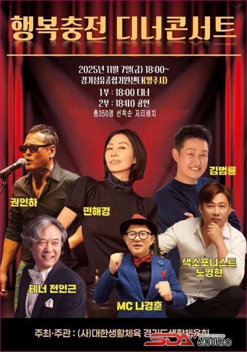 [½Åµ¿¾Æ¹æ¼Û±âÀÚ] ¿À´Â 11¿ù 7ÀÏ(±Ý) ¿ÀÈÄ 6½Ã, ¾çÁֽà °æ±â¼¶À¯Á¾ÇÕ¼¾ÅÍ¿¡¼­ ¡®Çàº¹ÃæÀü µð³Ê Äܼ­Æ®¡¯°¡ °³ÃֵȴÙ. À̹ø Äܼ­Æ®´Â (»ç)´ëÇÑ»ýȰüÀ° °æ±âµµ»ýȰüÀ°È¸°¡ ÁÖÃÖ¡¤ÁÖ°üÇϸç, Àú³á½Ä»ç¿Í ÇÔ²² Áñ±æ ¼ö Àִ ǰ°Ý ÀÖ´Â ¹®È­Çà»ç·Î ÁöÄ£ ÀÏ»ó ¼Ó ½Ã¹Îµé¿¡°Ô µû¶æÇÑ °¨µ¿°ú Èú¸µÀ» ¼±»çÇÒ ¿¹Á¤ÀÌ´Ù.