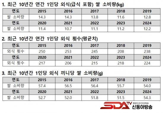 °ú°Å 10³â°£ Åë°è¿¡ µû¸£¸é ¿Ü½Ä ½Ò ¼Òºñ·®Àº 2015³â 14.3kg¿¡¼ 2024³â 12.2kg·Î °¨¼ÒÇßÁö¸¸, ½ÇÁ¦ ½Ä»ýȰ º¯È¿Í´Â ¹«°üÇÏ°Ô Á¶»ç »ê½Ä ÀÚü°¡ º¯ÇÏÁö ¾Ê¾Æ Åë°è ¿Ö°î °¡´É¼ºÀÌ ³ô´Ù´Â ÁöÀûÀÌ´Ù.
