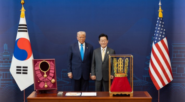 ±×µ¿¾È ¹«°ü¼¼¸¦ Æ®·³ÇÁÀÇ °¾Ð¿¡, ¹«±ÃÈ ´ëÈÆÀå°ú ¿Õ°üÀ¸·Î ¹Ù²Û À̹ø Çù»óÀº ùÛÚ¸ °ü°è¸¦ Àç Á¤¸³ÇÏ´Â °è±â°¡ µÉ °ÍÀ¸·Î º¸ÀδÙ.