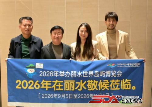 »çÁø=¿©¼ö½Ãû, Áß±¹À» ¹æ¹®ÇÑ Á¤±â¸í ¿©¼ö½ÃÀåÀÌ Áß±¹ Ç×ÁÖ ³ëº¸ÅÚ È£ÅÚ ·Îºñ¿¡¼­ ¸¶ÀÌŬ ºÎºÎ¿Í ³»³â ¿©¼ö¹æ¹®À» ȯ¿µÇÑ´Ù´Â ³»¿ëÀÇ Æîħ¸·À» µé°í ±â³ä»çÁøÀ» Âï°í ÀÖ´Ù.(»çÁø ¿ÞÂʺÎÅÍ ¹è±âºÀ ¿©¼ö½Ã ¼¶¹Ú¶÷ȸÁö¿ø°úÀå, Á¤±â¸í ¿©¼ö½ÃÀå, Æã±î¿À⠾Ƴª¿î¼­, ¸¶ÀÌŬ)