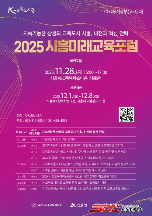 ¼¼ºÎ ¼¼¼ÇÀº 12¿ù 1ÀϺÎÅÍ 8ÀϱîÁö À̾îÁö¸ç, ¡ã±³À°º¹ÁöºÐ°ú(±³À°º¹Áö ÅëÇÕÁö¿ø ³×Æ®¿öÅ© ÃßÁø ¹æ¾È / ´À¸°ÇнÀÀÚ µî ±³À°º¹Áö ¼Ò¿Ü°èÃþ Áö¿øÀÇ ÇöÀç¿Í ¹Ì·¡) ¡ã±³À°ÇàÁ¤ºÐ°ú(Çб³-Áö¿ª»çȸ ÁÖÂ÷Àå »óÈ£°øÀ¯ Á¤Ã¥ Á¦¾È ¹× ½ÇÇö ¹æ¾È) ¡ã±âÈÄȯ°æºÐ°ú(½ÃÈïÇü ȯ°æ±³À°°úÁ¤ °³¹ß°ú »ç·Ê) ¡ãK-±³À°µµ½ÃºÐ°ú(±³À°À» ÅëÇØ µµ¾àÇÏ´Â ±³À°µµ½Ã ¹æ¾È) ¡ãÀÌÁÖ¹è°æÃ»¼Ò³âºÐ°ú(´Ù¹®È½Ã´ë, ¸ðµÎÀÇ ¹è¿òÀ» À§ÇÑ Æ÷¿ë±³À° ¹æ¾È) µî 5°³ ºÐ°ú·Î ¿î¿µµÈ´Ù. ¶ÇÇÑ ¡®½ÃÈï°øÀ¯Çб³ Çкθ𠼳¸íȸ¡¯¿Í ¡®2026 ½ÃÈï±³À°Á¤Ã¥ ¹× ¿øÅ¬¸¯½Ã½ºÅÛ »ç¾÷¼³¸íȸ¡¯ µî ¿¬°è ¼¼¼Çµµ ÇÔ²² ÁøÇàµÈ´Ù.