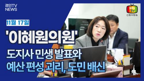 °æ±âµµÀÇȸ ±âȹÀçÁ¤À§¿øÈ¸ ¼Ò¼Ó ÀÌÇý¿ø ÀÇ¿ø(±¹¹ÎÀÇÈû, ¾çÆò2)Àº 11¿ù 14ÀÏ ¿¸° Á¦387ȸ Á¤·Êȸ ±âȹÀçÁ¤À§¿øÈ¸ Á¾ÇÕ°¨»ç¿¡¼, °æ±âµµÀÇ 2026³âµµ º»¿¹»ê¾ÈÀÌ »çȸÀû ¾àÀÚ¸¦ À§ÇÑ ÇÙ½É º¹Áö»ç¾÷À» ´ëÆø »è°¨ÇÑ »ç½ÇÀ» °ÇÏ°Ô ºñÆÇÇß´Ù.