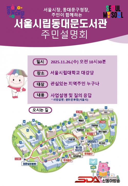 ¼³¸íȸ´Â ¼­¿ï½ÃÀ塤µ¿´ë¹®±¸Ã»Àå Àλ縻, ¼­¿ï½Ã ¹®È­º»ºÎÀåÀÇ °Ç¸³°èȹ ¼³¸í, ÁֹΠÁúÀÇÀÀ´ä ¼øÀ¸·Î ÁøÇàµÇ¸ç, Áö¿ªÁֹΠµî ¾à 400¿© ¸íÀÌ Âü¼®ÇÒ °ÍÀ¸·Î ¿¹»óµÈ´Ù.