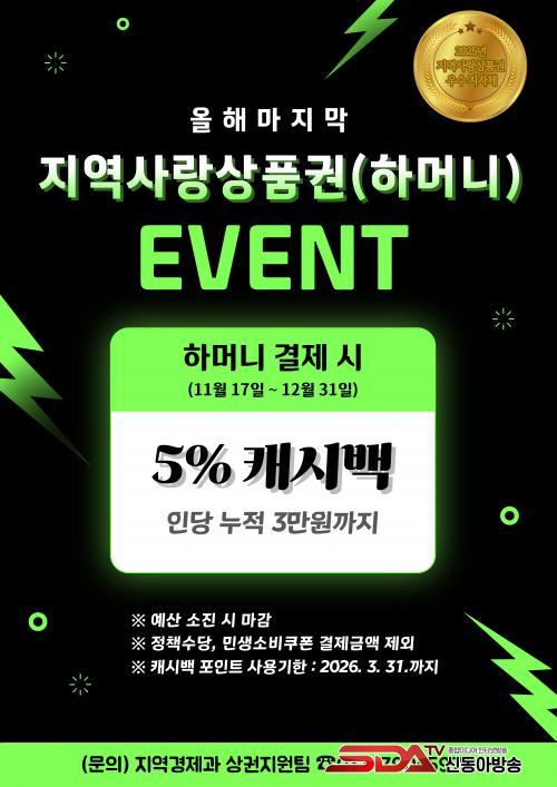 ¶ÇÇÑ °ü³» ÀüÅë½ÃÀå°ú »óÁ¡°¡¿¡¼´Â 11¿ù 22ÀϺÎÅÍ 30ÀϱîÁö °æ±âÁö¿ªÈÆó(ÇϸӴÏ) °áÁ¦ ½Ã ÃÖ´ë 20% ÆäÀ̹éÀ» Á¦°øÇÏ´Â ¡®ÇϹݱ⠰æ±â »ì¸®±â Åë Å« ¼¼ÀÏ¡¯ÀÌ ÁøÇàµÈ´Ù. °Ç´ç 15¸¸ ¿ø ÀÌ»ó °áÁ¦ÇÒ °æ¿ì ÃÖ´ë 3¸¸ ¿ø±îÁö, ±â°£ ³» ÃÖ´ë 4ȸ±îÁö ÇýÅÃÀ» ¹ÞÀ» ¼ö ÀÖ´Ù. ¾Æ¿ï·¯ °°Àº ±â°£ ÁøÇàµÇ´Â ¡®ÂøÇѼҺñ ÆäÀ̹顯 Çà»ç(ÇÏ¸Ó´Ï °áÁ¦¾×ÀÇ 5% ij½Ã¹é Á¦°ø)¿Íµµ Áߺ¹ Àû¿ëÀÌ °¡´ÉÇØ ¼ÒºñÀÚ ÇýÅÃÀÌ ´õ¿í È®´ëµÉ Àü¸ÁÀÌ´Ù.