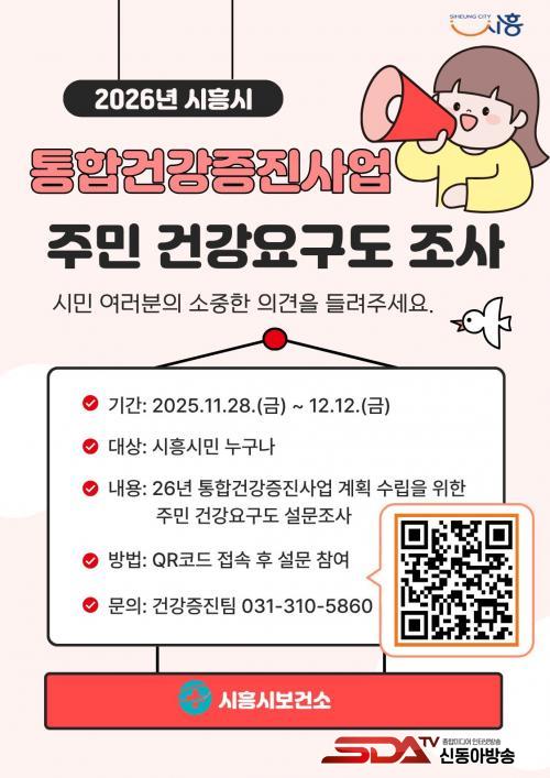 À̹ø Á¶»ç´Â Áö¿ª»çȸ °Ç°¹®Á¦¿Í ½Ã¹ÎµéÀÇ ¿ä±¸¸¦ ÆÄ¾ÇÇØ »ç¾÷ ¿ì¼±¼øÀ§¸¦ ¼³Á¤Çϰí, ½Ã¹Î °Ç° ¼öÁØÀ» ºÐ¼®ÇØ 2026³â Áö¿ª»çȸ ÅëÇհǰÁõÁø»ç¾÷ °èȹ ¼ö¸³¿¡ ¹Ý¿µÇϱâ À§ÇØ ¸¶·ÃµÆ´Ù.