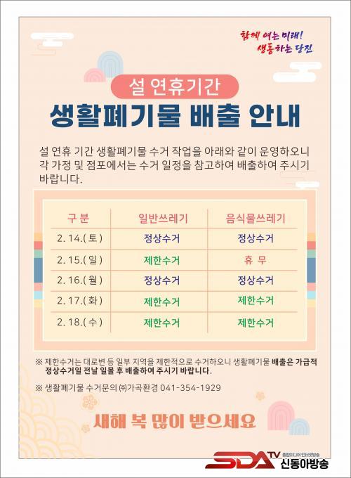 ½Ã¿¡ µû¸£¸é ¼³ ¿¬ÈÞ ±â°£ÀÎ 2¿ù 14ÀϺÎÅÍ 2¿ù 18ÀϱîÁö ÀϹݾ²·¹±â¿Í À½½Ä¹°¾²·¹±â ¼ö°Å°¡ ÀϺΠÁ¶Á¤µÈ´Ù.
