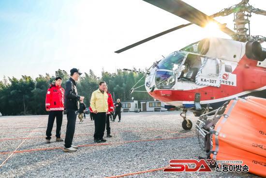 Á¶±ÙÁ¦ ÇԾȱº¼ö´Â Çï±â ±âÀå µî °ü°èÀÚµé°ú »ê¸²Àç³­´ëÀÀ´Ü(»êºÒÀü¹®¿¹¹æÁøÈ­´ë)ÀÇ ³ë°í¸¦ °Ý·ÁÇÏ°í »êºÒ ¹ß»ý ½Ã ½Å¼ÓÇÑ Çï±â Ã⵿À» À§ÇÑ Áغñ ż¼¿¡ ¾Ö·Î»çÇ×ÀÌ ¾ø´ÂÁö Á¡°ËÇß´Ù. ¶ÇÇÑ ´ëÇü »êºÒ·Î À̾îÁöÁö ¾Êµµ·Ï »êºÒ ÇöÀå¿¡¼­ÀÇ °øÁßÁøÈ­(Çï±âÆÀ)¿Í Áö»óÁøÈ­(»ê¸²Àç³­´ëÀÀ´Ü)°¡ ±ä¹ÐÇÑ °øÁ¶ ü°è¸¦ À¯ÁöÇØ »êºÒ ´ëÀÀ¿¡ Èû½á ÁÙ °ÍÀ» °­Á¶ÇÏ¿´´Ù.