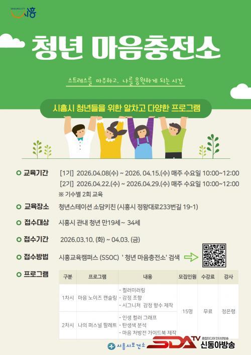 Âü¿©¸¦ Èñ¸ÁÇϴ û³âÀº ¿À´Â 3¿ù 10ÀϺÎÅÍ 4¿ù 3ÀϱîÁö ½ÃÈï±³À°Ä·ÆÛ½º ¡®½ï(SSOC)¡¯¿¡¼ ¡®Ã»³â ¸¶À½ÃæÀü¼Ò¡¯¸¦ °Ë»öÇØ¼ ½ÅûÇÏ¸é µÈ´Ù. ÇÁ·Î±×·¥ ¹®ÀÇ´Â ½ÃÈï½Ãº¸°Ç¼Ò °Ç°µ¹º½°ú(031-310-0767)·Î ÇÏ¸é µÈ´Ù.