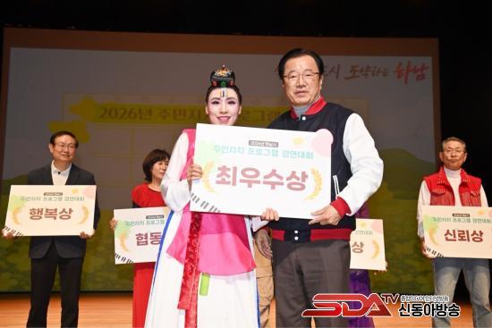 À̹ø ´ëȸ´Â ÁֹεéÀÌ °¢ µ¿ ÁÖ¹ÎÀÚÄ¡¼¾ÅÍ¿¡¼ °¥°í´ÛÀº ±â·®À» ¼±º¸À̸ç ÈÇÕÇÏ´Â »ýȰ¹®È ÃàÁ¦ÀÇ ÀåÀ¸·Î ¸¶·ÃµÆ´Ù. Çà»ç ÇöÀå¿¡´Â ÀÌÇöÀç Çϳ²½ÃÀå°ú ³²Ã¢¼ö ÁÖ¹ÎÀÚÄ¡ÇùÀÇȸ ȸÀåÀ» Æ÷ÇÔÇØ 13°³ µ¿ ¼±¼ö´Ü°ú ÀÀ¿ø´Ü µî ¾à 700¿© ¸íÀÌ Âü¼®ÇØ ¿±â¸¦ ´õÇß´Ù.