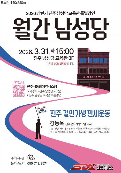 ù °¿¬Àº ¿À´Â 31ÀÏ ¿ÀÈÄ 3½Ã ÁøÁÖ ³²¼º´ç ±³À°°ü¿¡¼ °µ¿¿í ÁøÁÖ¹®È»ç¶û¸ðÀÓ À̻簡 °»ç·Î ³ª¼ ¡®°ÉÀΡ¤±â»ý ¸¸¼¼¿îµ¿¡¯À» ÁÖÁ¦·Î ¿¸°´Ù. ÁøÁֽà ÅëÇÕ¿¹¾à½Ã½ºÅÛÀ» ÅëÇØ ¼±Âø¼ø 30¸í±îÁö ¹«·á·Î Âü¿©ÇÒ ¼ö ÀÖ´Ù.