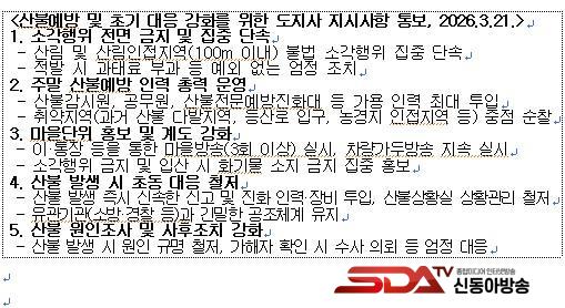 µµ´Â º½Ã¶ ´ëÇü»êºÒ Ưº°´ëÃ¥±â°£(3¿ù 14ÀÏ~4¿ù 30ÀÏ) µ¿¾È ´Ü¼Ó°ú Ãʵ¿ ´ëÀÀÀ» ´õ¿í °ÈÇϰí, »êºÒ °¡ÇØÀÚ¿¡ ´ëÇÑ ¹«°ü¿ë ¿øÄ¢À» Àû¿ëÇØ »êºÒ ¹ß»ý ÃÖ¼ÒÈ¿¡ ÇàÁ¤·ÂÀ» ÁýÁßÇÒ ¹æÄ§ÀÌ´Ù.