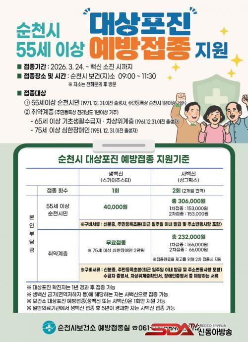 ¼øÃµ½Ã °ü³»¿¡ 1³â ÀÌ»ó °ÅÁÖÇÑ ¸¸ 55¼¼ ÀÌ»ó ½Ã¹Î(1971³â 12¿ù 31ÀÏ ÀÌÀü Ãâ»ýÀÚ)À» ´ë»óÀ¸·Î »ý¹é½Å ±âÁØ 50%(4¸¸¿ø)¸¦ Áö¿øÇϸç, Á¢Á¾ºñ´Â »ý¹é½Å 40,000¿ø, »ç¹é½Å 1ȸ 153,000¿øÀ¸·Î Á¢Á¾ Ƚ¼ö´Â »ý¹é½Å 1ȸ, »ç¹é½Å 2ȸ Á¢Á¾(2°³¿ù °£°Ý)ÀÌ´Ù.