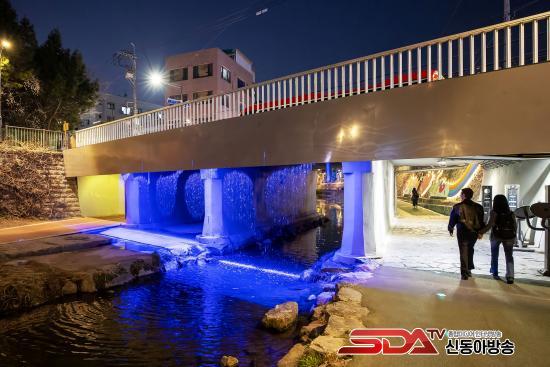 ¾È°¨±³¿¡ ¼³Ä¡µÈ ¹«Áö°³ºÐ¼ö´Â µðÁöÅÐ ¿öÅͽºÅ©¸°°ú RGB Á¶¸íÀ» Ȱ¿ëÇÑ °ÍÀÌ Æ¯Â¡ÀÌ´Ù. ƯÈ÷ Çѱ¹Àü·Â°ø»ç Àü·Â±¸¿¡¼ ¹ß»ýÇÏ´Â À¯Ãâ ÁöÇϼö¸¦ Ȱ¿ëÇØ ģȯ°æÀûÀ¸·Î ¿î¿µµÈ´Ù. ³·¿¡´Â ½Ã¿øÇÑ ¹°ÁÙ±â·Î µµ½ÉÀÇ ¿±â¸¦ ½ÄÇôÁÖ°í, ¹ã¿¡´Â Á¶¸í°ú °áÇÕµÈ ¾ß°æÀ» ¿¬ÃâÇØ »ö´Ù¸¥ º¼°Å¸®¸¦ Á¦°øÇÑ´Ù.