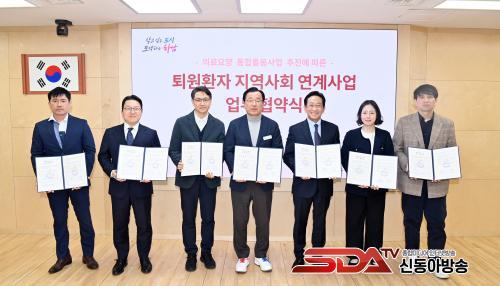 À̳¯ Çù¾à½Ä¿¡´Â Çϳ²½ÃÀå°ú °ü°è °ø¹«¿øÀ» ºñ·ÔÇØ °ü³» ÀÇ·á±â°ü 5°³¼Ò(Ç޻캴¿ø, º¸¹Ù½ºº´¿ø, ¹Ì»ç°º¯¿ä¾çº´¿ø, ¶óÀÌÇÁ¿ä¾çº´¿ø, °µ¿¹Ì»çÇѹ溴¿ø)¿Í °ü¿Ü ÀÇ·á±â°ü 1°³¼Ò(Áß¾Óº¸Èƺ´¿ø) µî ÃÑ 6°³ ÀÇ·á±â°ü °ü°èÀÚµéÀÌ Âü¼®ÇØ, Åð¿øÈ¯ÀÚ¸¦ À§ÇÑ ÀǷᡤ¿ä¾ç¡¤µ¹º½ ¼ºñ½º ¿¬°è ¹× Çù·Â ¹æ¾ÈÀ» ³íÀÇÇÏ°í ¾÷¹«Çù¾àÀ» ü°áÇß´Ù.
