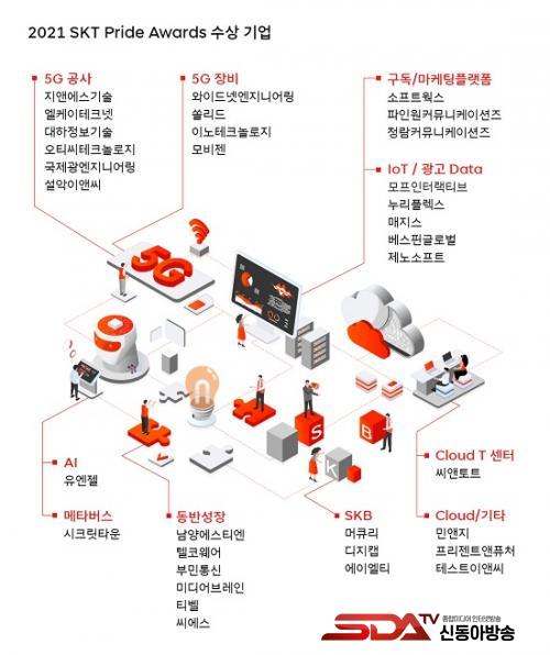 SKT´Â À̳¯ ¼ö»ó ȸ»ç·Î ¼±Á¤µÈ 33°³ ±â¾÷¿¡ À¯¿µ»ó CEOÀÇ ÃàÇÏ ¸Þ½ÃÁö¿Í ¼±¹°À» ¹ß¼ÛÇß´Ù. ¼ö»ó ±â¾÷¿¡´Â ÀÎÁõÆÐ¿Í ÇöÆÇ µî ¼±¹°°ú ÇÔ²² ÀÓÁ÷¿ø ÇØ¿Ü ¿¬¼ö ±âȸ ¹× ¹«ÀÌÀÚ ´ëÃâ ÇÁ·Î±×·¥ ¿ì¼± Áö¿ø±ÇÀÌ Á¦°øµÈ´Ù.