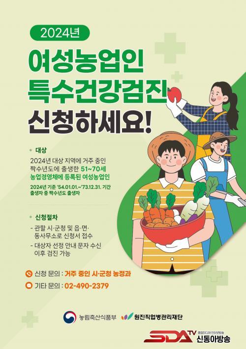 ¡¸¿©¼º³ó¾÷ÀΠƯ¼ö°Ç°°ËÁø»ç¾÷¡¹Àº ³óÀÛ¾÷ °ü·Ã °¢Á¾ Áúȯ¿¡ Ãë¾àÇÑ ¿©¼º³ó¾÷ÀÎÀÇ °Ç°°ËÁøºñ¿ëÀ» Áö¿øÇØ ÀÇ·áºñ ºÎ´ãÀ» ÁÙÀ̰íÀÚ ³ó¸²Ãà»ê½ÄǰºÎ°¡ ÃßÁøÇϰí ÀÖ´Â »ç¾÷ÀÌ´Ù. ±èÇØ½Ã´Â ¿ÃÇØ ÃÊ °ø¸ð¸¦ ÅëÇØ 50°³ ÁöÀÚü Áß ÇÑ °÷À¸·Î ¼±Á¤µÆ´Ù.