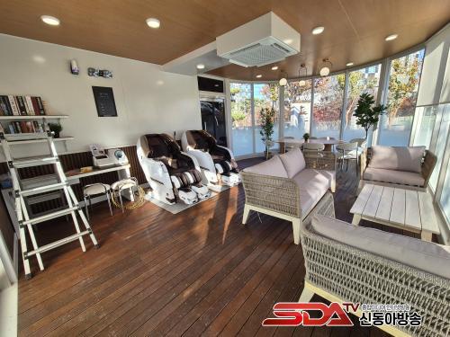 ½°ÅÍ 1Ãþ¿¡´Â ¾È¸¶ÀÇÀÚ, ÀÚµ¿Ç÷¾ÐÃøÁ¤±â, ¹Ì¼¼¸ÕÁöÃøÁ¤±â, ÀÚµ¿½ÉÀåÁ¦¼¼µ¿±â, ³Ã‧³¹æ±â¸¦ Æ÷ÇÔÇØ ¿©·¯ ¸íÀÌ ÇÔ²² ¾ÉÀ» ¼ö ÀÖ´Â Å×À̺í°ú ¼ÒÆÄ¸¦ °®Ãß°í ÀÖ´Ù.