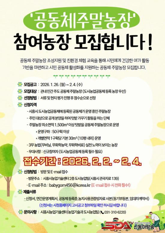 ½Åû ´ë»óÀº ½ÃÈï½Ã µµ½Ã³ó¾÷°øµ¿Ã¼¿¡ µî·ÏµÈ °øµ¿Ã¼°¡ ¿î¿µ ÁßÀÎ ÁÖ¸»³óÀåÀÌ´Ù. ÁÖ¹ÎÀ» ´ë»óÀ¸·Î °ø°³ ºÐ¾çÇØ ÅÔ¹ç °¡²Ù±â Ȱµ¿À» ÇÏ´Â ´Üü¿©¾ß Çϸç, ³óÀå ±Ô¸ð´Â ÃÖ¼Ò 1,500§³ ÀÌ»ó, ¿î¿µ ±¸Á 50±¸È¹ ÀÌ»óÀ» °®Ãç¾ß ÇÑ´Ù. ±¸È¹´ç ¸éÀûÀº 30§³(¾à 10Æò) ³»¿Ü ±âÁØÀÌ´Ù. ¶ÇÇÑ ¹«ºñ´Ò, ¹«ÈÇгó¾à, ¹«ÈÇкñ·á µî À̸¥¹Ù ¡®3¹« ³ó¹ý¡¯ ½Çõ ³ë·ÂÀÌ È®ÀεǴ ³óÀåÀ» ¿ì¼± °í·ÁÇÑ´Ù.