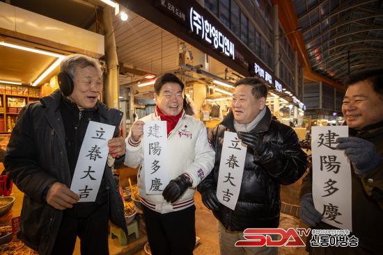 ÀÌÇÊÇü µ¿´ë¹®±¸Ã»ÀåÀÌ 3ÀÏ Ã»·®¸®¡¤°æµ¿½ÃÀåÀ» ¹æ¹®ÇÏ¿© »óÀεé°ú ¡®ÀÔÃá´ë±æ °Ç¾ç´Ù°æ(Ø¡õðÓÞÑÎ ËïåÕÒýÌÔ)¡¯À̶ó ÀûÈù Á¾À̸¦ ÇÔ²² µé¾î º¸À̸ç ȯÇÏ°Ô ¿ô°í ÀÖ´Ù.