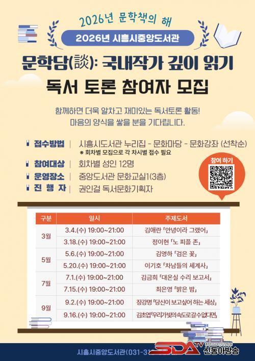¹®Çдã(ÓÈ) Åä·ÐÀº ÃÑ 8ȸÂ÷·Î ±¸¼ºµÅ 3¿ùºÎÅÍ °Ý¿ù·Î 1¤ý3ÁÖ ¼ö¿äÀÏ Àú³á 7½Ã¿¡ ¿î¿µµÇ¸ç, ȸÂ÷º° µµ¼¿Í ÁÖÁ¦¿¡ µû¶ó °¢ 12¸í¾¿ ¸ðÁýÇÒ °èȹÀÌ´Ù. 3¿ù µ¶¼Åä·Ð Âü¿© ½ÅûÀº ¿À´Â 2¿ù 13ÀÏ ¿ÀÀü 10½ÃºÎÅÍ ½ÃÈï½Ãµµ¼°ü ´©¸®Áý¿¡¼ ¼±Âø¼øÀ¸·Î ÇÏ¸é µÈ´Ù. °¿¬¿¡ ´ëÇÑ ÀÚ¼¼ÇÑ »çÇ×Àº Áß¾Óµµ¼°ü(031-310-5222)À¸·Î ¹®ÀÇÇÏ¸é µÈ´Ù.